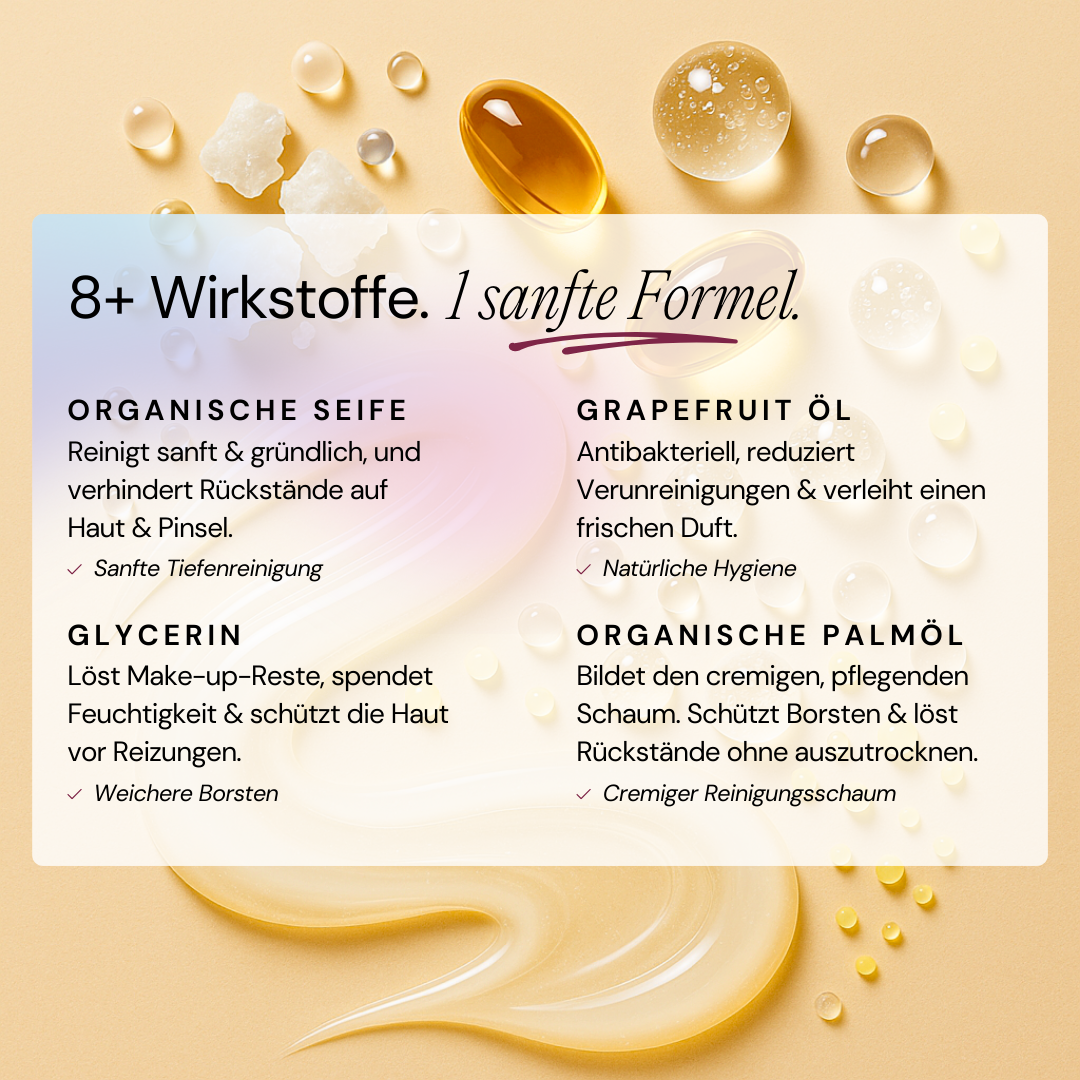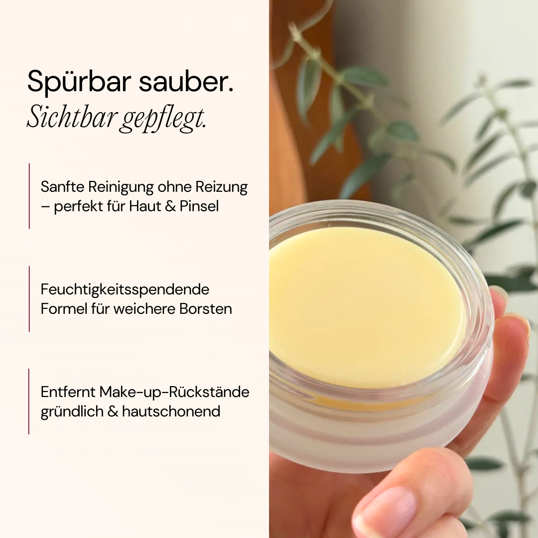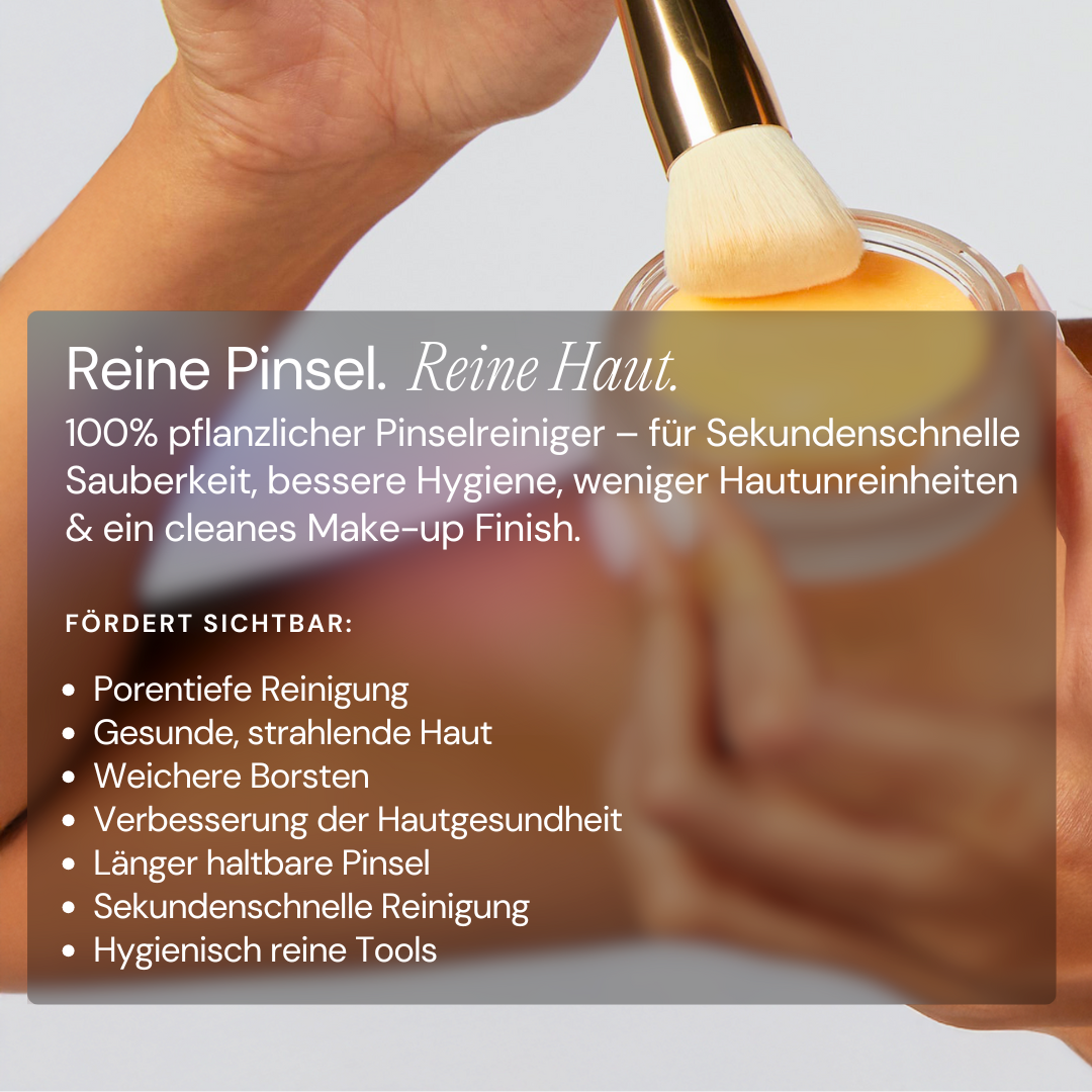 Reinigt deine Pinsel in Sekunden – ohne Ölfilm & perfekt für klare, gepflegte Haut. Sanft, gründlich, rückstandsfrei und 100% pflanzlich.