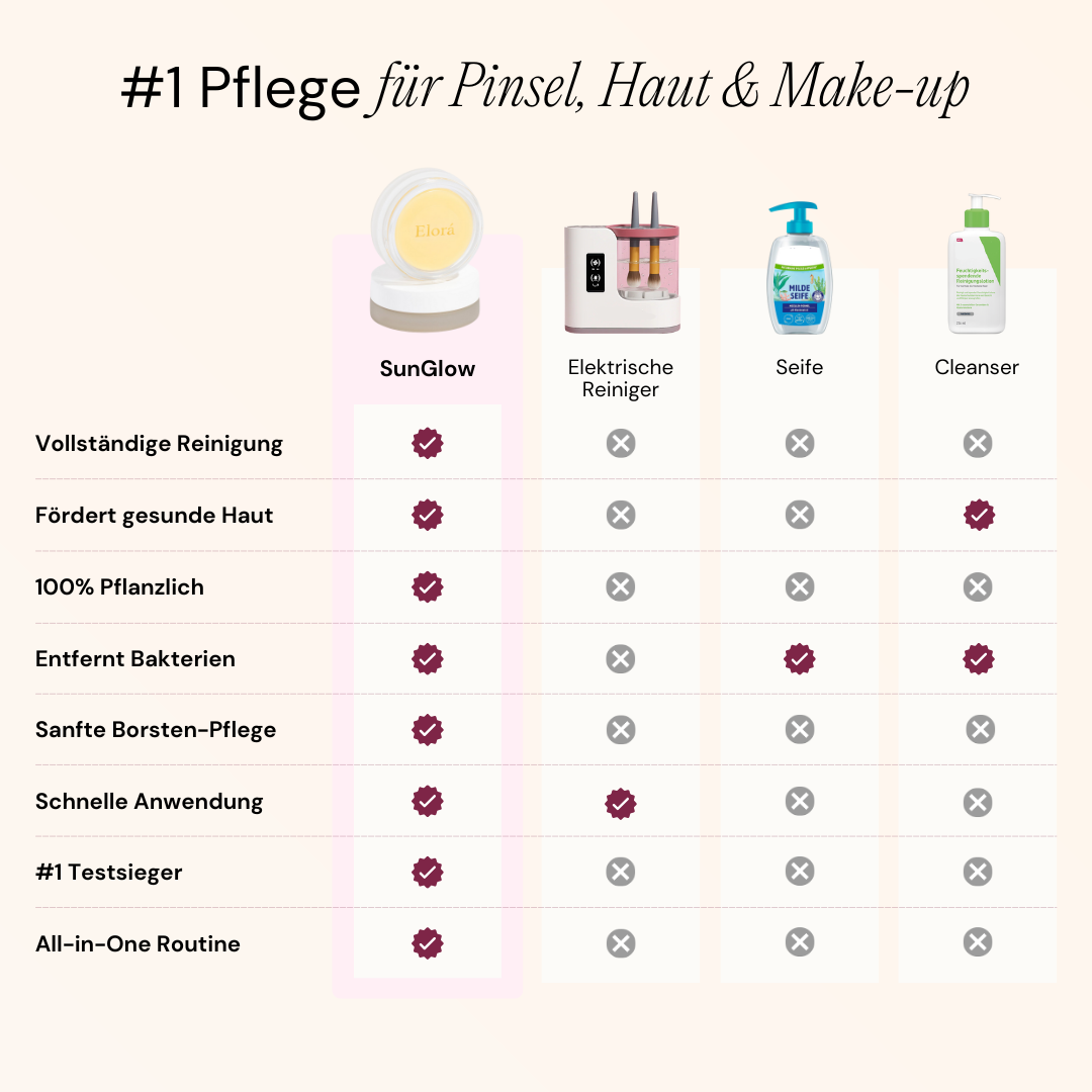 Ich wusste jahrelang nicht, warum meine Haut immer so Unrein ist, obwohl ich immer teure Cremes kaufe... Erst als ich meine Pinsel mit Elorá gereinigt habe, wurde mir klar, wie viel altes Make-up da drin hing. Seitdem ich sie damit regelmäßig sauber mache, sieht man schon deutlich, wie sich meine Haut verbessert.