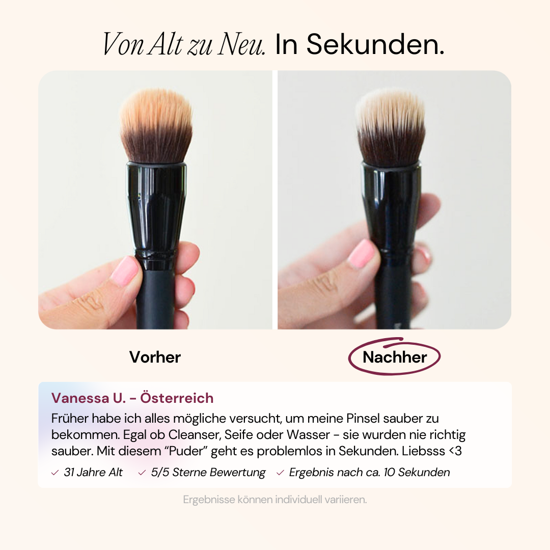 ✓ Empfohlen: 2–3 Mal pro Woche reinigen – bei Foundation-Pinseln gerne öfter.